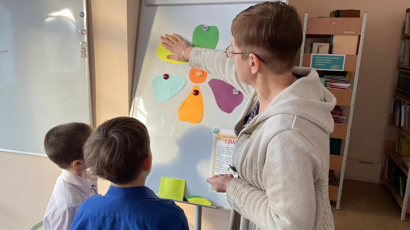Сегодня в ИБЦ нашей школы прошло мероприятие, посвящённое Международному дню "Спасибо". Ребята из третьего класса, вместе с библиотекарем, совершили путешествие в волшебную страну "Доброе слово". Преодолевая разные препятствия в виде каверзных вопросов, загадок, ребусов, угадывания пословиц и решения непростых ситуаций команда добралась до волшебной страны. В финале путешествия дети оживили своими добрыми "волшебными" словами засохшее дерево.
